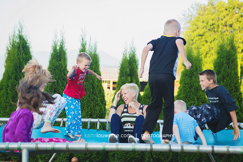 Afterwards, we headed back to home base for some trampoline photos. Auntie Marie with her nephews and nieces.